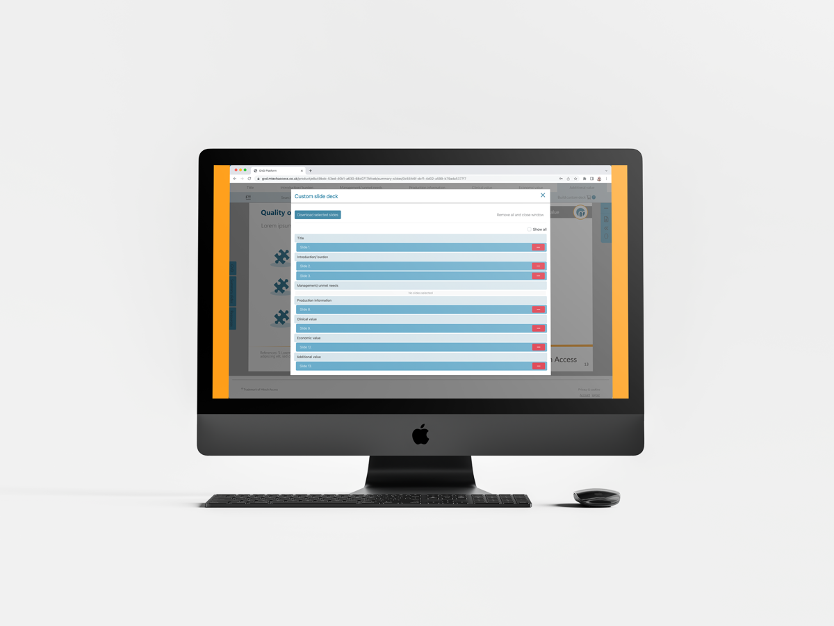When preparing evidence for global value dossiers for use in several markets, we recommend conducting separate systematic literature reviews for different markets featuring RWE from each local health system and population. Our interactive value platform enables market-specific systematic reviews to be linked to a central global value dossier. Local teams will have access to the evidence of relevance to their market, linked to the global value proposition.