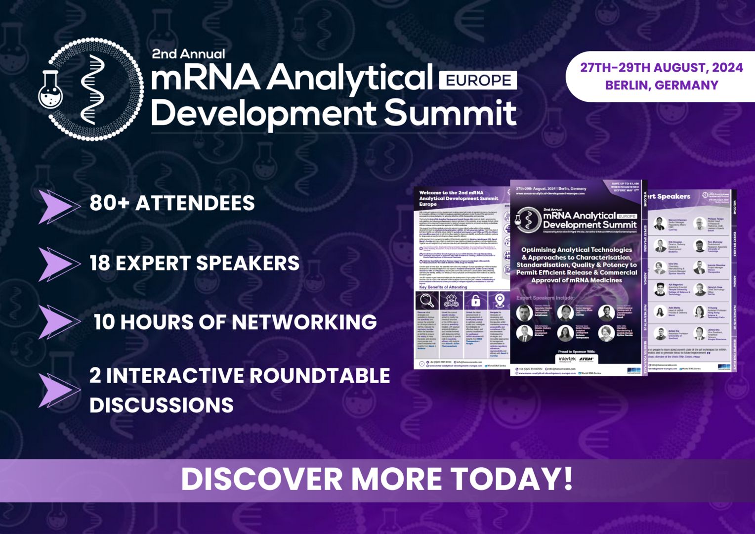 Reuniting 80+ industry experts in Analytical Development, Quality Control, Quality Assurance, CMC, and Regulatory, this forum aims to tackle pivotal challenges within mRNA analytical development including biophysical characterisation, dsRNA, and tail sequence analysis. We will also tackle issues related to analytical techniques to meet CQAs and CPIs for efficient and expeditious approval, as well as hurdles related to improved stability and effective delivery systems for large-scale productions to improve tissue-specific delivery.