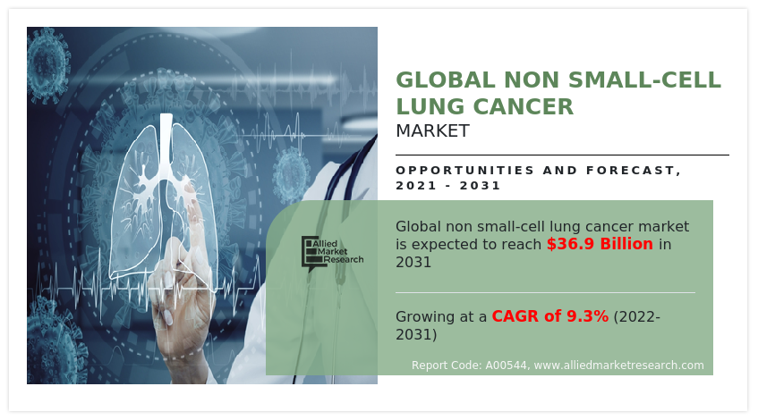 Allied Market Research published a report, titled, “Global Non Small-Cell Lung Cancer Market by Type (Adenocarcinoma, Squamous Cell Carcinoma, Large Cell Carcinoma, Others), by Treatment Type (Chemotherapy, Targeted Therapy, Immunotherapy), by Distribution Channel (Hospital Pharmacy, Drug Store and Retail Pharmacy, Online Pharmacy): Global Opportunity Analysis and Industry Forecast, 2021-2031”. According to the report, the global Non-Small Cell Lung Cancer Market Size was Valued at 𝐔𝐒𝐃 𝟏𝟓.𝟑 𝐛𝐢𝐥𝐥𝐢𝐨𝐧 𝐢𝐧 𝟐𝟎𝟐𝟏 and is Projected to Garner 𝐔𝐒𝐃 𝟑𝟔.𝟗 𝐛𝐢𝐥𝐥𝐢𝐨𝐧 𝐛𝐲 𝟐𝟎𝟑𝟏, registering a 𝐂𝐀𝐆𝐑 𝐨𝐟 𝟗.𝟑% from 2022 to 2031.