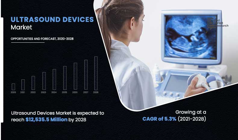The Ultrasound Devices Market is experiencing remarkable growth driven by technological advancements, expanding applications, and a growing demand for non-invasive diagnostic procedures. Ultrasound devices, which utilize sound waves to create images of internal body structures, have become essential tools across various medical specialties, including obstetrics, cardiology, radiology, and urology. The market’s evolution is marked by the development of more portable and handheld ultrasound devices, allowing for greater accessibility and point-of-care diagnostics, especially in resource-limited settings and during emergency situations. The global ultrasound devices market size was valued at $8,475.8 million in 2020, and is projected to reach $12,535.5 million by 2028, registering a CAGR of 5.3% from 2021 to 2028.