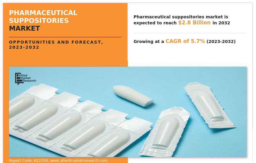 Allied Market Research published a report, titled, “Pharmaceutical Suppositories Market by Type (Rectal Suppositories, Vaginal Suppositories, Urethral Suppositories), by Base (Fatty Bases, Water Miscible Base, Emulsifying Bases), by Distribution Channel (Hospital Pharmacies, Retail Pharmacies, Online Sales), by End User (Hospitals and Clinics, Home Care, Nursing Home), by Prescription Type (OTC, Prescribed Suppositories): Global Opportunity Analysis and Industry Forecast, 2023–2032″.