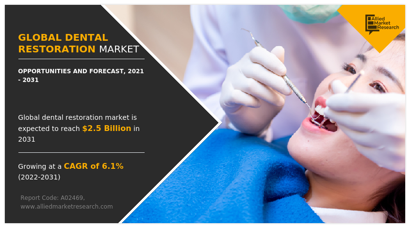 Dental Restoration Market Statistics: The global Dental Restoration market is estimated to reach $2.5 billion by 2031, growing at a CAGR of 6.1% from 2022 to 2031.