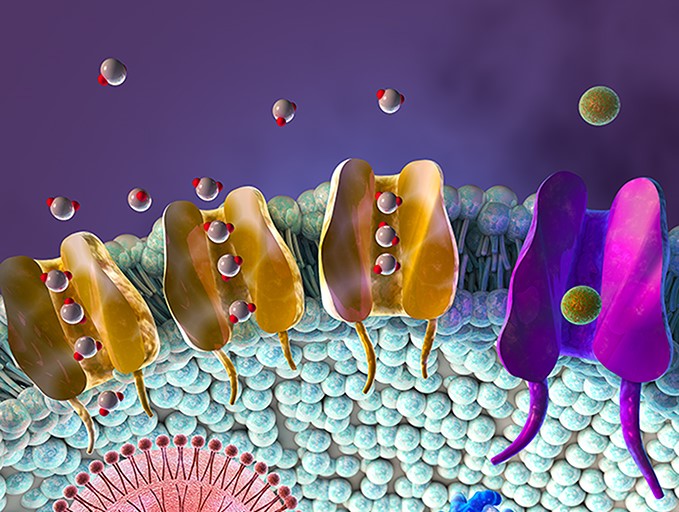 EMBARGOED TO 12:00 GMT ON TUESDAY 16 JANUARY 2024 Image shows how tiny water channels control how water enters and exits cells through their membranes