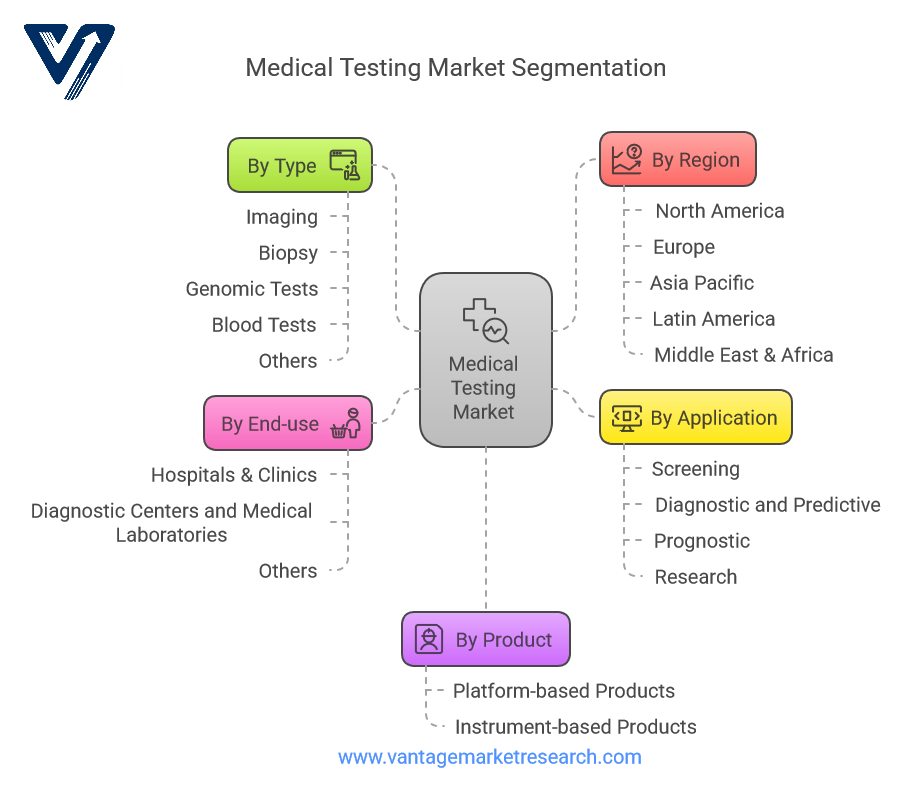 - Segment Dominance: The imaging segment represents the largest market share (52.74% as of 2022), while genomic testing is expected to witness the highest growth rate due to the increasing adoption of precision medicine approaches.