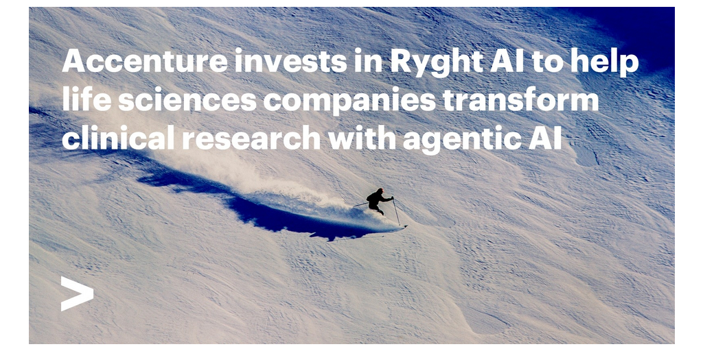 NEW YORK--(BUSINESS WIRE)--Accenture (NYSE: ACN) has invested in Ryght AI, a platform provider that modernizes how clinical research is designed and executed for the life sciences industry. This investment, made through Accenture Ventures, will enable life sciences and clinical research companies to bring new treatments to patients faster by combining agentic AI with enterprise technology solutions.